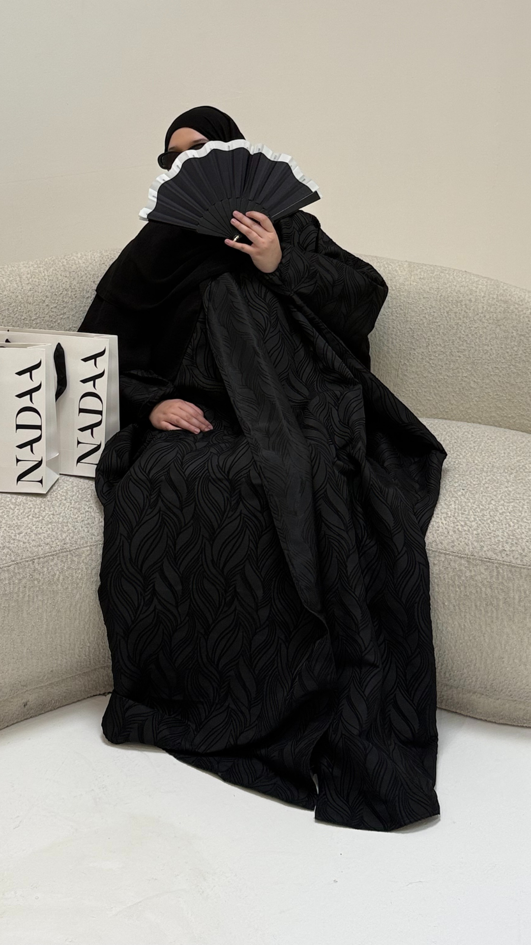 👉 Conseil : porte les chaussures que tu mets habituellement avec tes abayas pour avoir la bonne longueur.